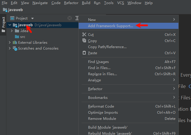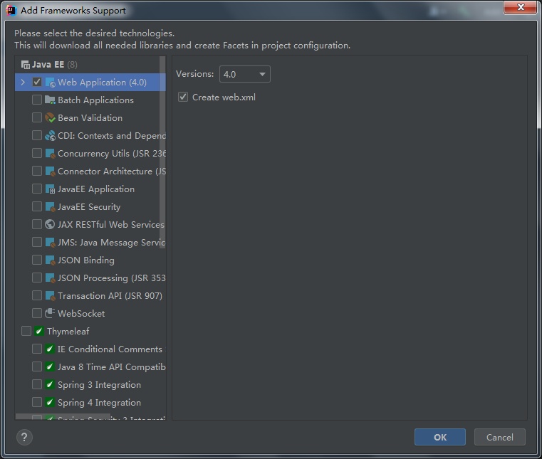 右键项目名——选择Add Framework Support——添加Web Application(4.0)