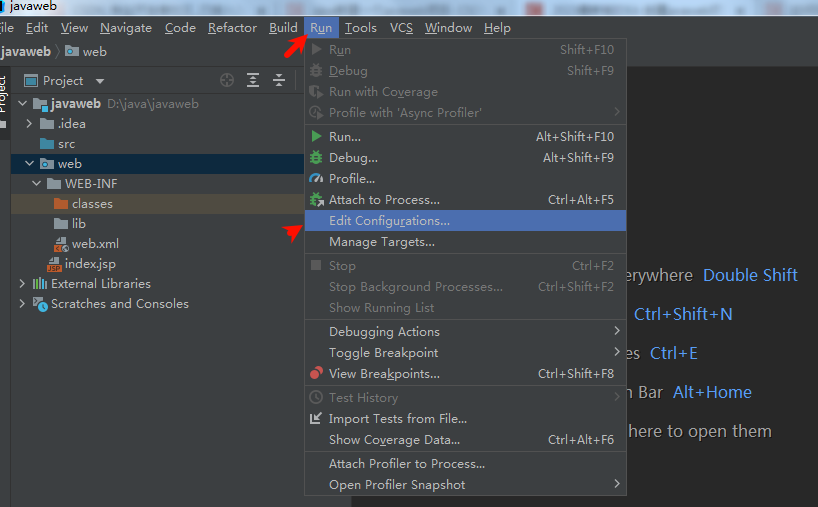右键WEB-INF文件夹下新建classes和lib文件夹