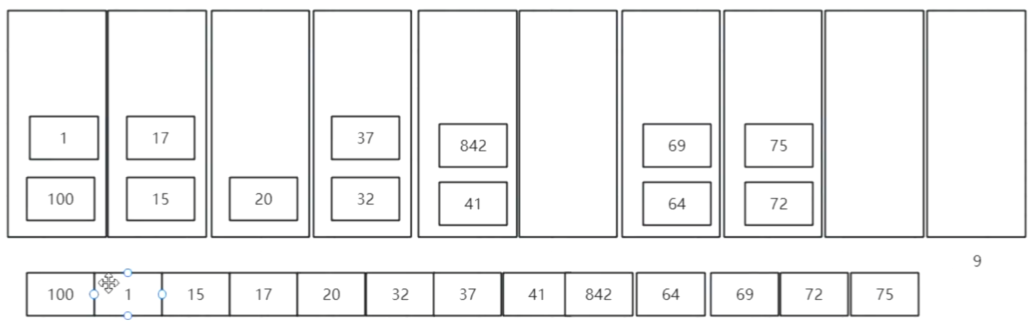 memset(bucketCounts, 0, sizeof(int) * 10); // 清空计数器