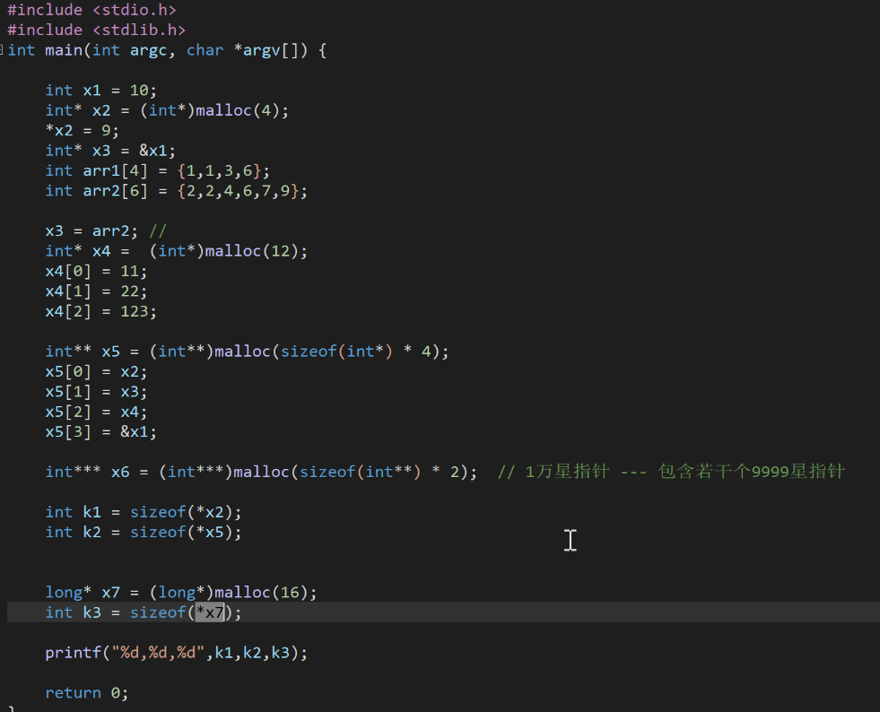 指针所指向的区域我们无法通过指针来计算它的大小,非指针类型指向的区域是可以的