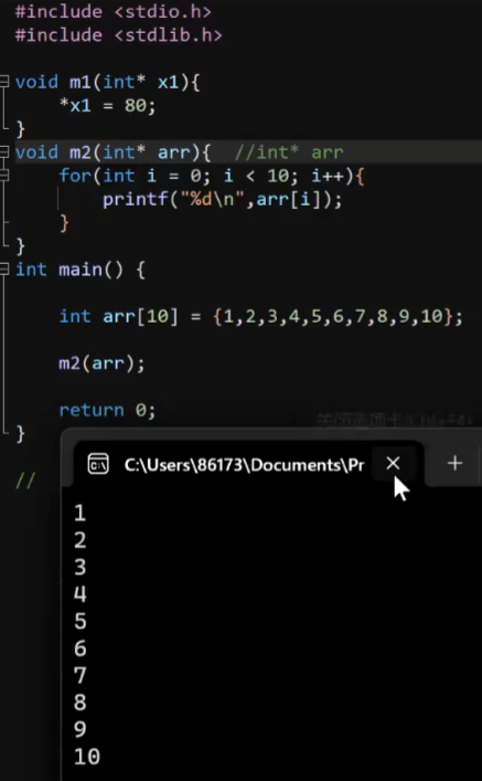 上述图片函数中的int arr[10]默认转化成下图函数中的int* arr