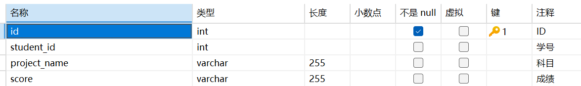SELECT t.id , t.student_id as '学号' , student_name , score , sex