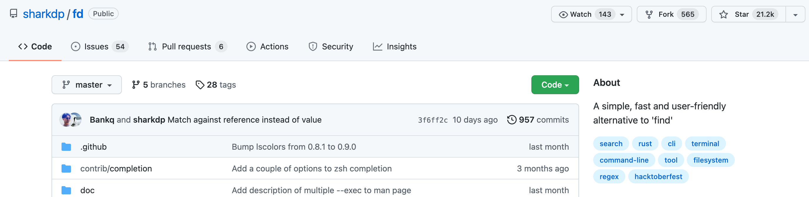 项目地址:https://github.com/sharkdp/fd