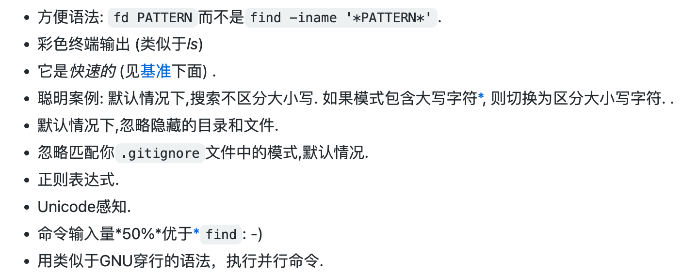 fd 提供了各个操作系统平台的安装方式,再不济可以直接通过源码进行安装(前提是有 Rust 的环境噢)