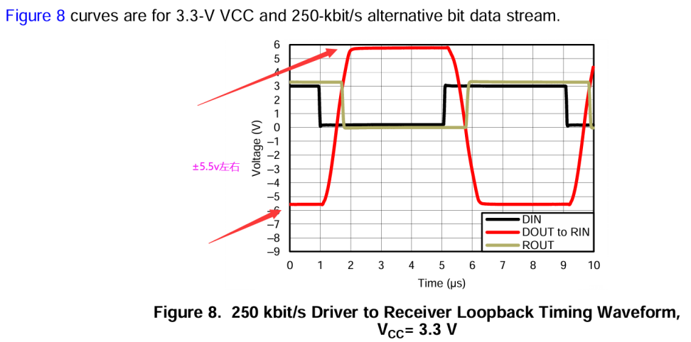 作为接收的时候,因为芯片支持,到±15,外部电路限定到±7,esd的影响可能导致这个出现锯齿。