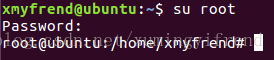 2、输入su root后,输入刚刚的密码,即可获取root权限