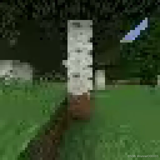 我们正对着一棵树。如你所见,分辨率相当低。低分辨率意味着像素更少,这能加快处理速度。幸运的是,神经网络不需要 4K 分辨率也能理解屏幕上的内容。