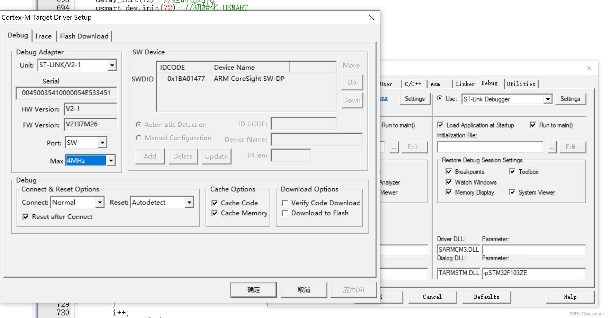 在Keil里面能够看到ST-link的系列号: