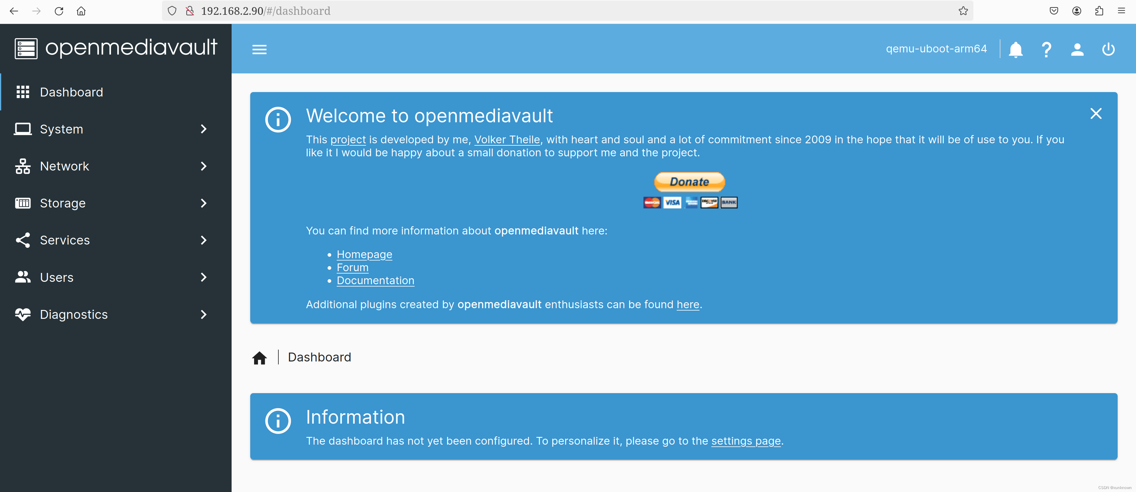 web site: https://www.openmediavault.orgqemu-uboot-arm64 login: root