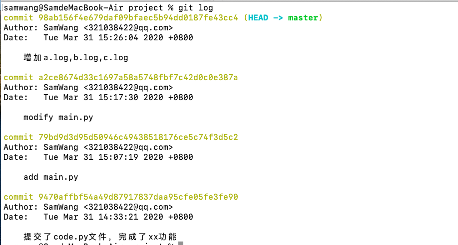 我们想看看这个命令的用法:git reset 指定版本 将git仓库与暂存区域的内容回滚到了指定版本,并未修改你的本地目录git reset --soft 指定版本只是将仓库的内容,回滚到了指定版本git reset --hard 指定版本将本地、暂存、仓库的都回滚到上一个版本指定版本,版本如何表示?