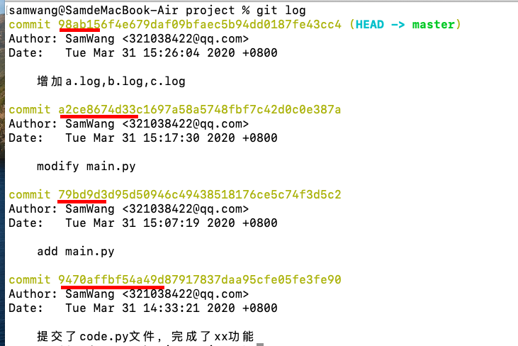 commit后面的这一串东西就是我们的版本id,当然你不需要全部使用,可以用前6~7位就行了。