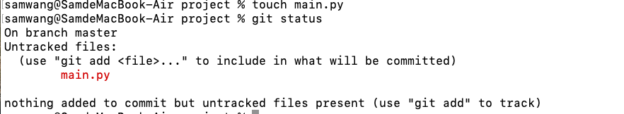 比如我现在在本地新增一个main.py文件,然后在查看一下状态