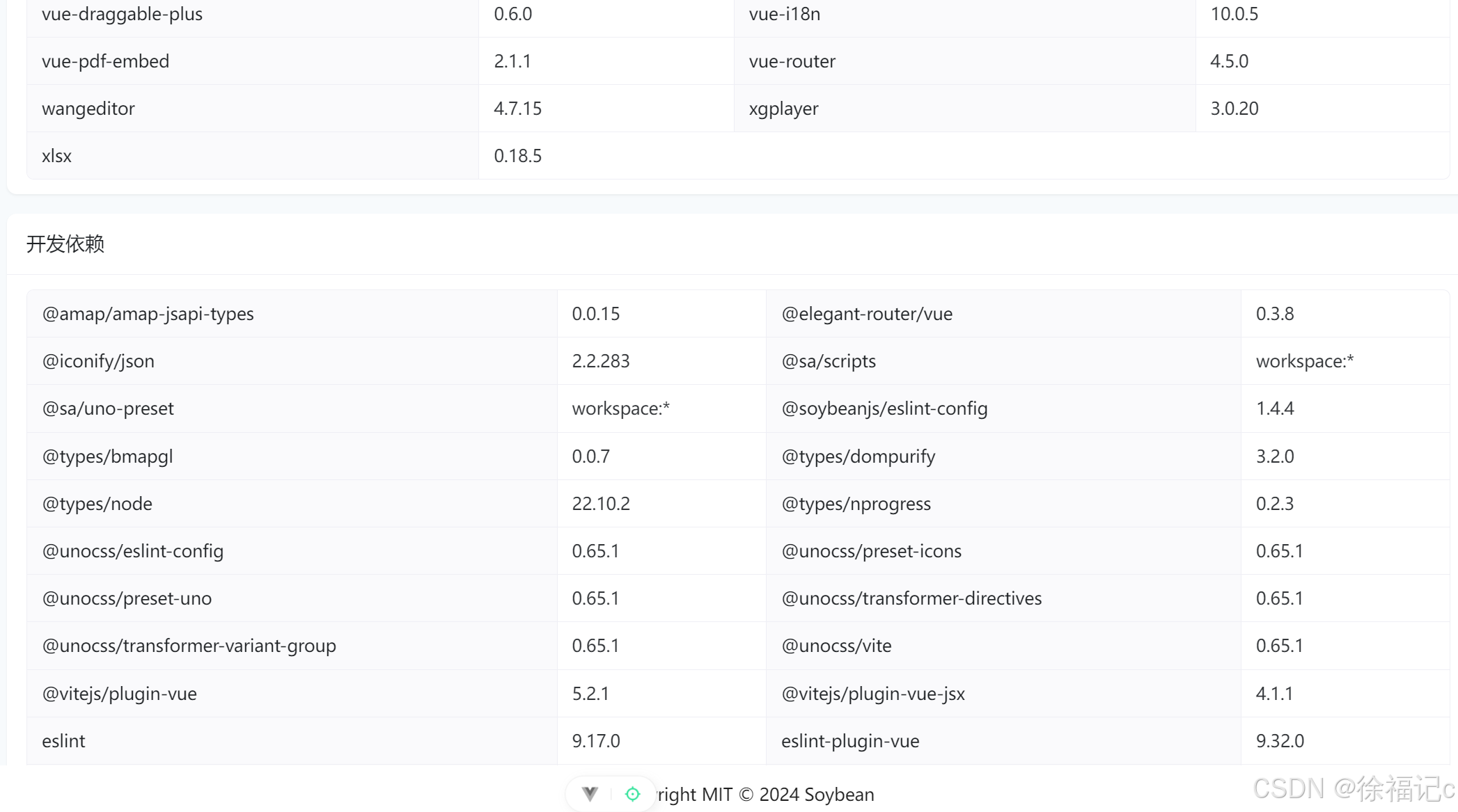 每个依赖项作为一个描述项,标签为依赖项的名称,内容为依赖项的版本号。