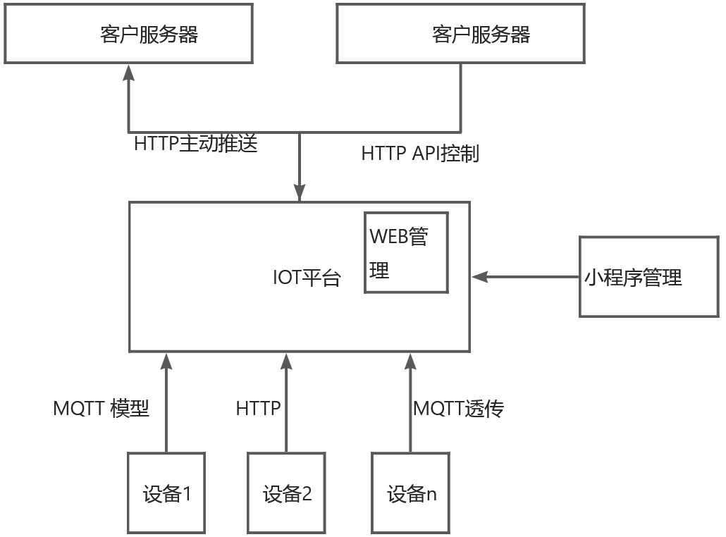 | 场景1 | 没有能力研发自己的服务器和小程序,需要现成的服务器系统对设备进行管理WEB和小程序显示 |