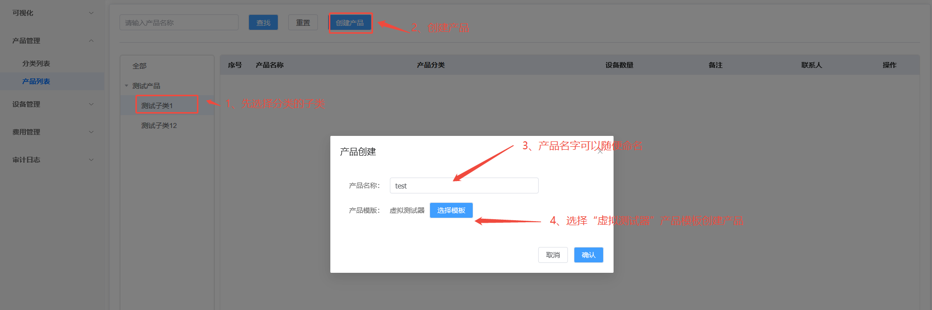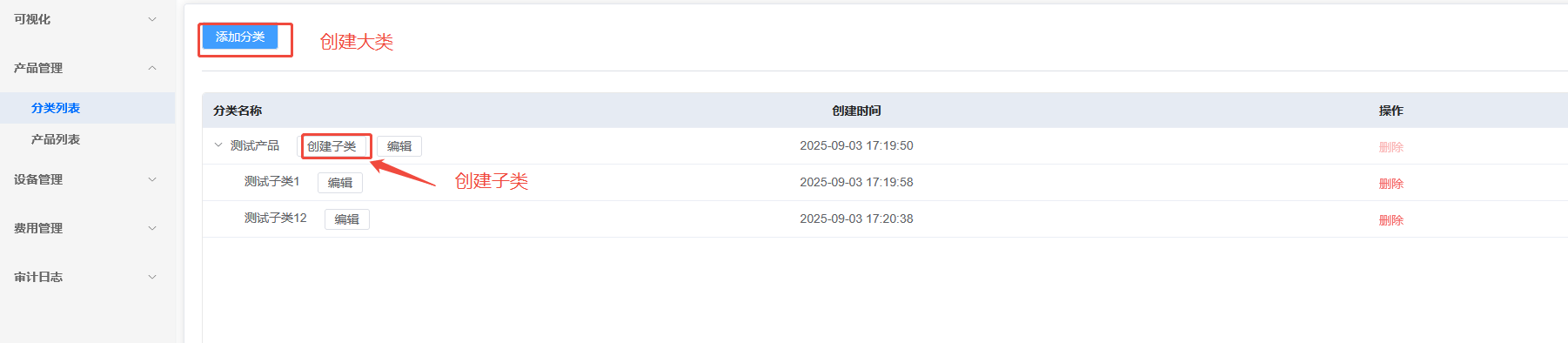 进入应用后,就可以编辑产品分类,创建产品,授权设备了。
