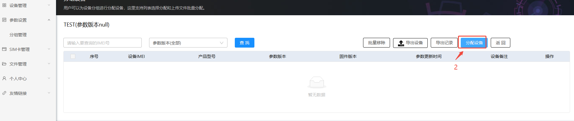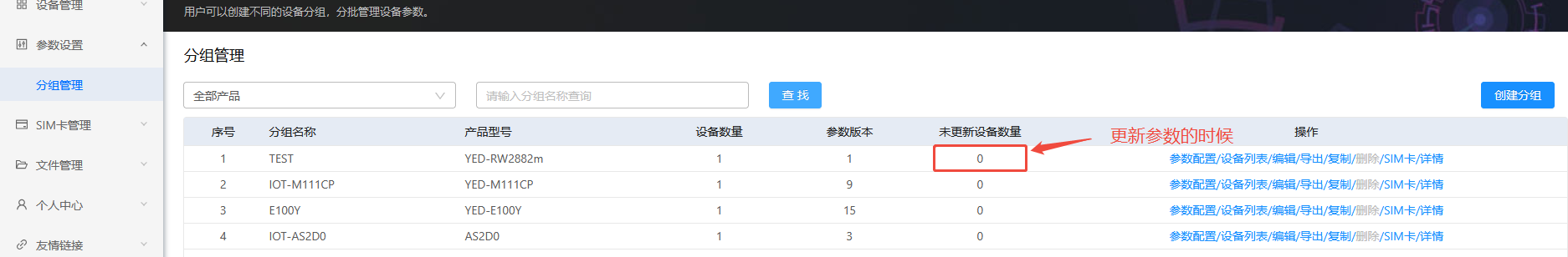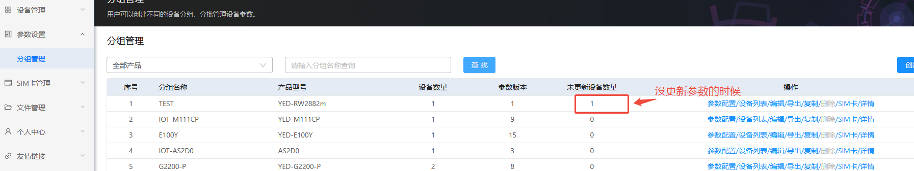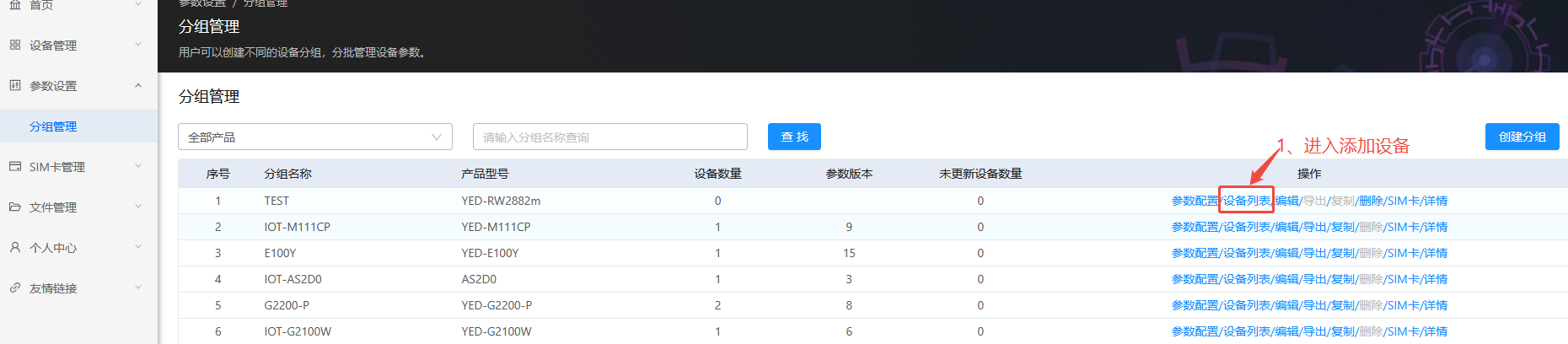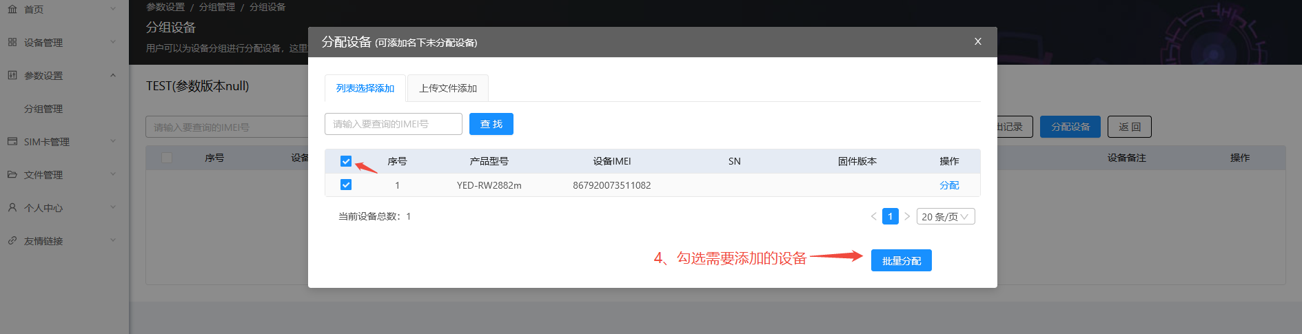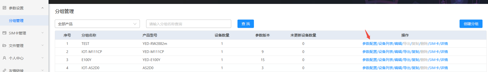 勾选分配设备后就可以点击返回,进入分组列表,然后进入“参数配置”进行配置参数