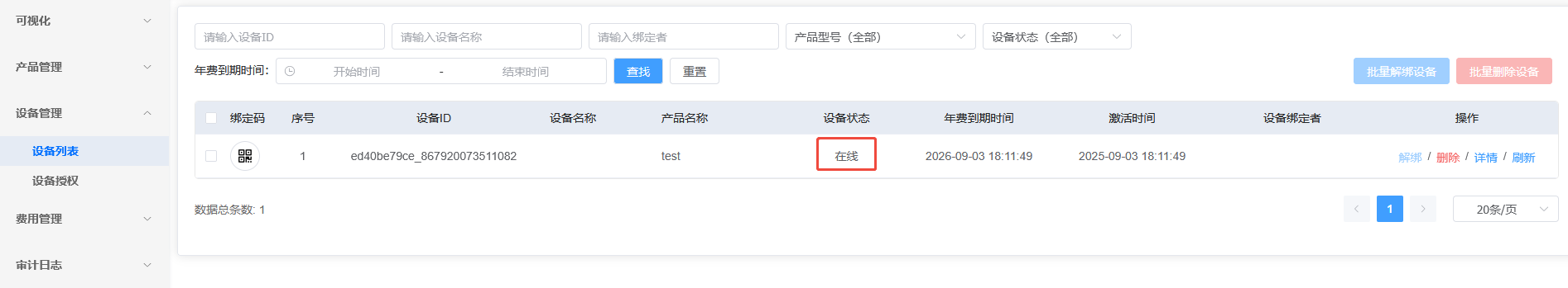 观察设备是否IOT在线,如果SIM卡,网络正常,IOT平台就会显示设备在线。设备的到期时间就按按设第一次上线开始计算。