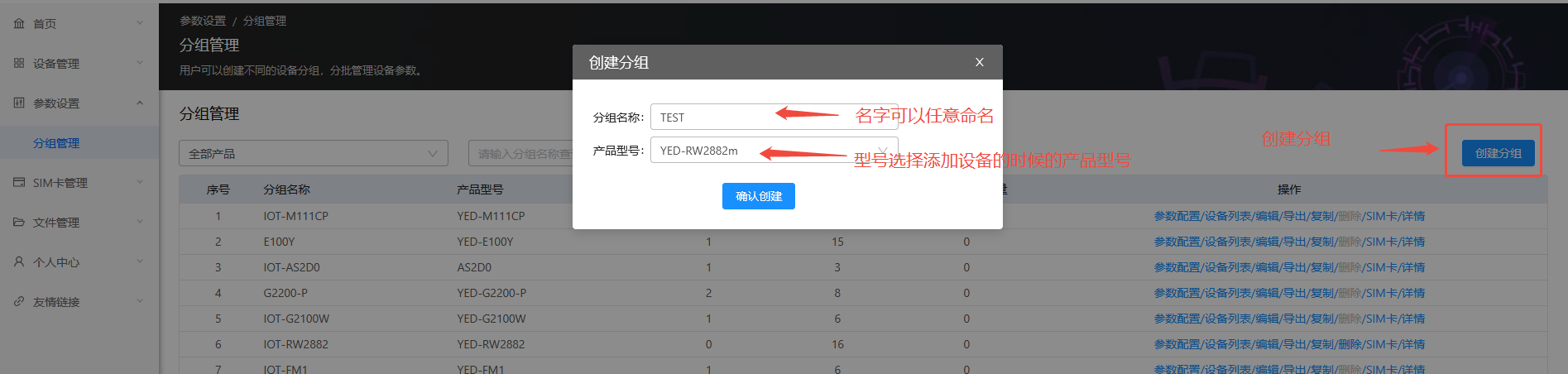 进入DTU配置平台https://dtu.yinerda.com 创建分组,添加设备,配置参数