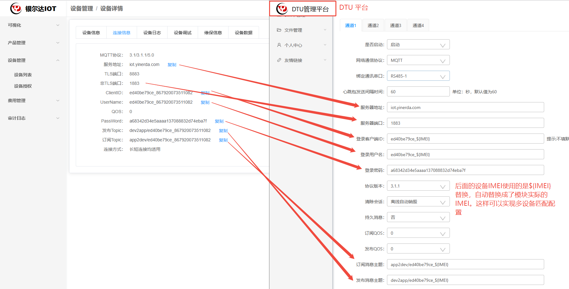 本教材涉及到2个平台,一个是IOT平台(iot.yinerda.com),一个是DTU平台(dtu.yinerda.com)。