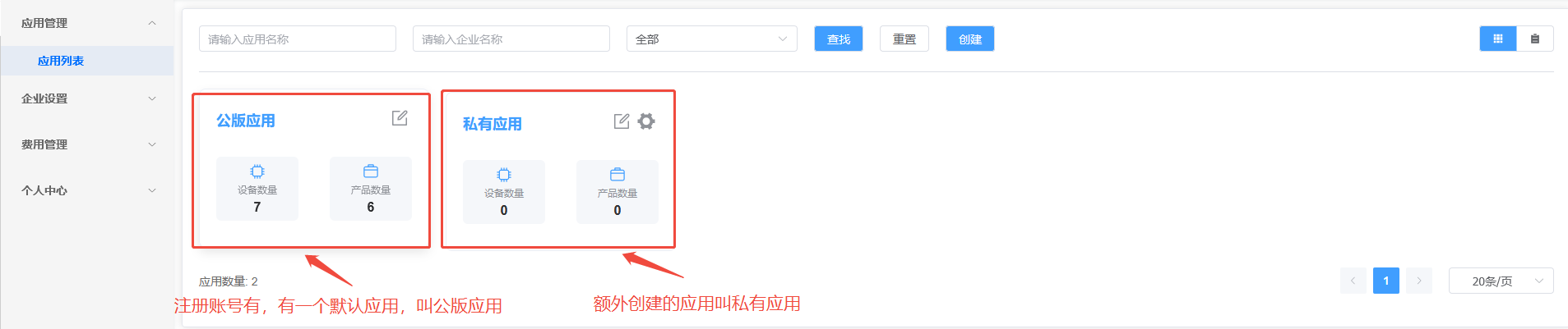 私有应用,是付费应用,可以部署自己的小程序,并且必须部署自己的小程序才能使用。私有小程序里面可以展示产品分类,用户余额充值,用户设备续费等功能。