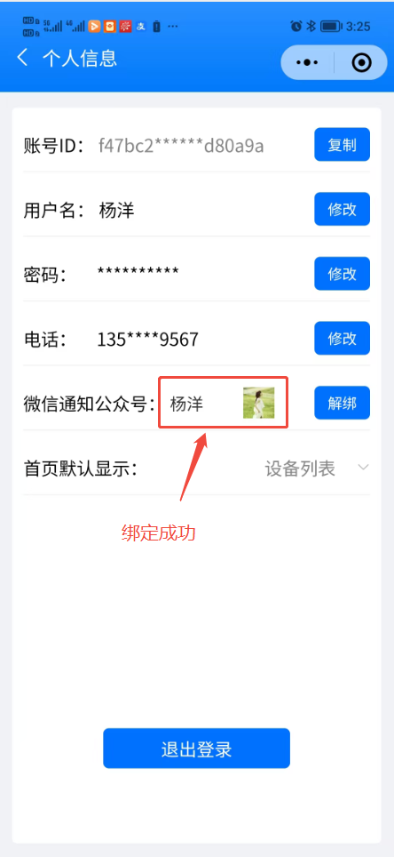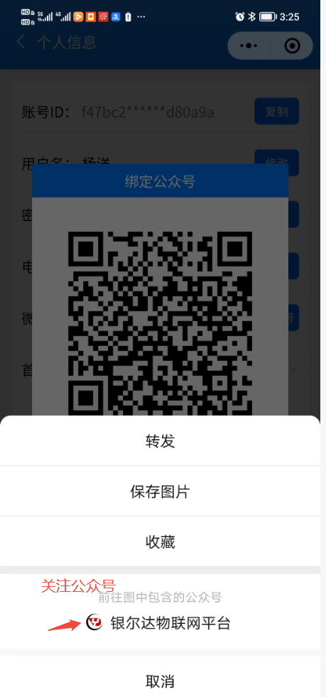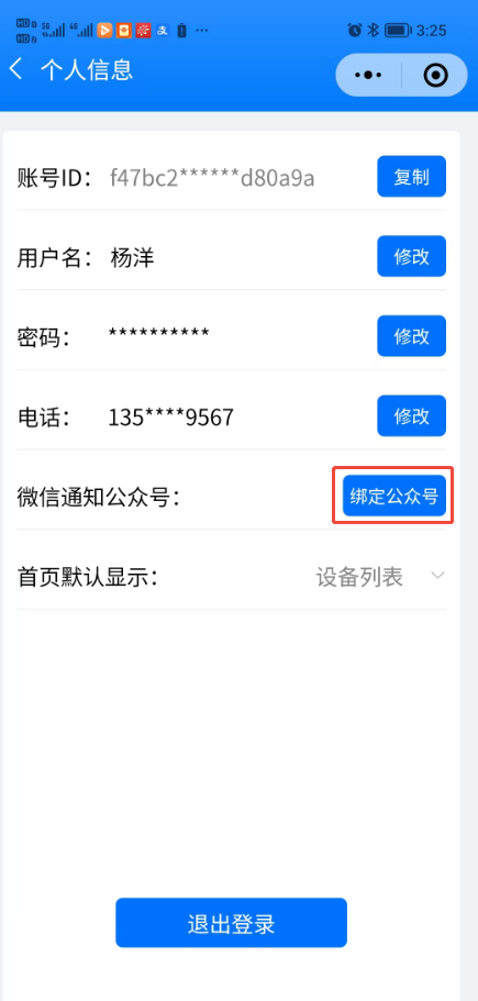 绑定微信公众号,主要是用来做一些消息提醒。比如设备到期提醒,设备报警提醒等。