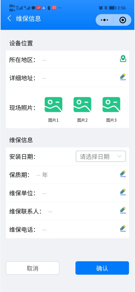 维保信息,是固定UI界面,设置设备的安装信息,其中里面照片一般是上次设备的安装环境这些。