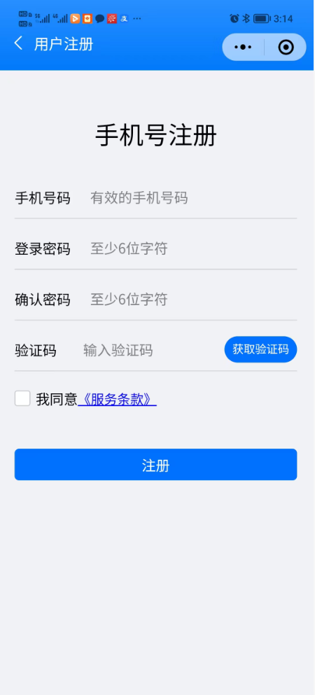 在小程序登录界面使用手机号,注册账号。注意手机号需要验证码。有的客户可能没办法收到短信验证码。就需要管理员给他手动创建账号。