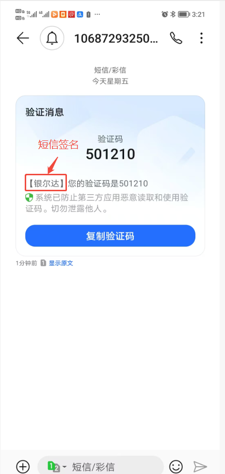 注意公版小程序验证码的短信签名是“银尔达”。只有私有化部署的应用才能使用自己的短信签名(公司自有品牌)。