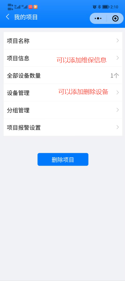 项目里面可以设置项目联系人,方便后续设备维护和联系。