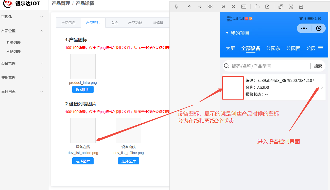 小程序上面显示的设备图标,就是在创建产品的时候添加的,如果不添加是空的