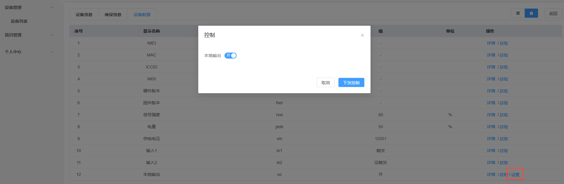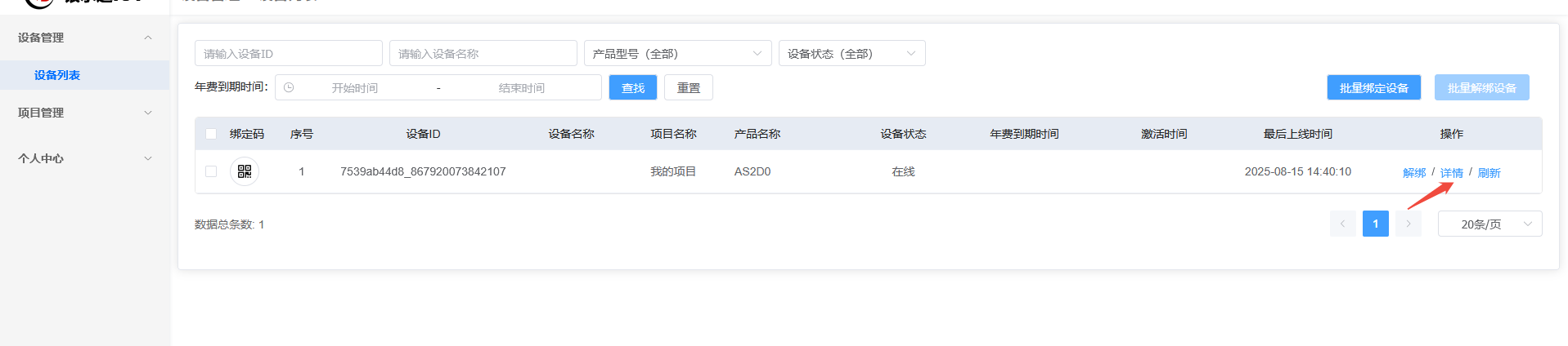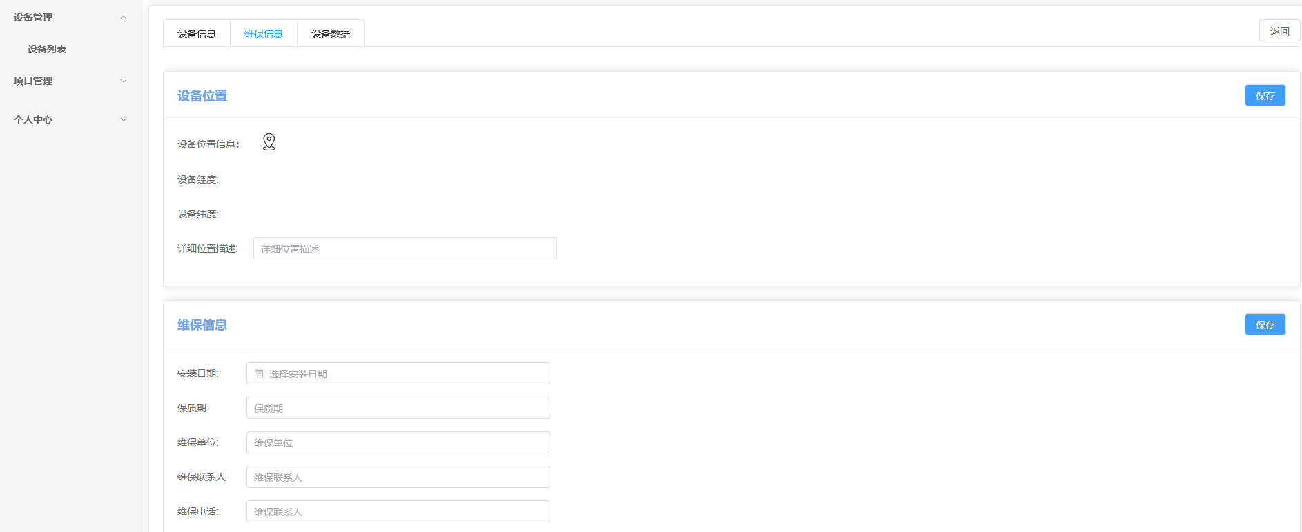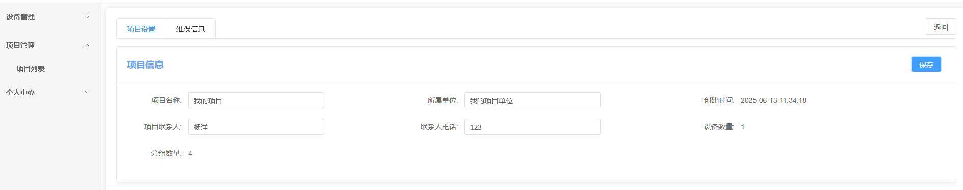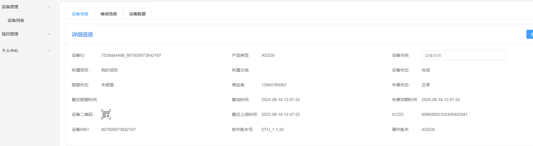 进入详情,可以看设备详情,设备维保信息,控制设备。