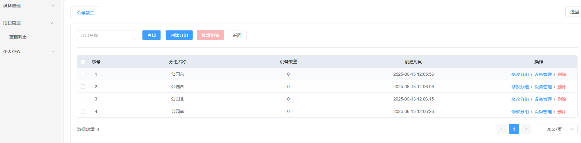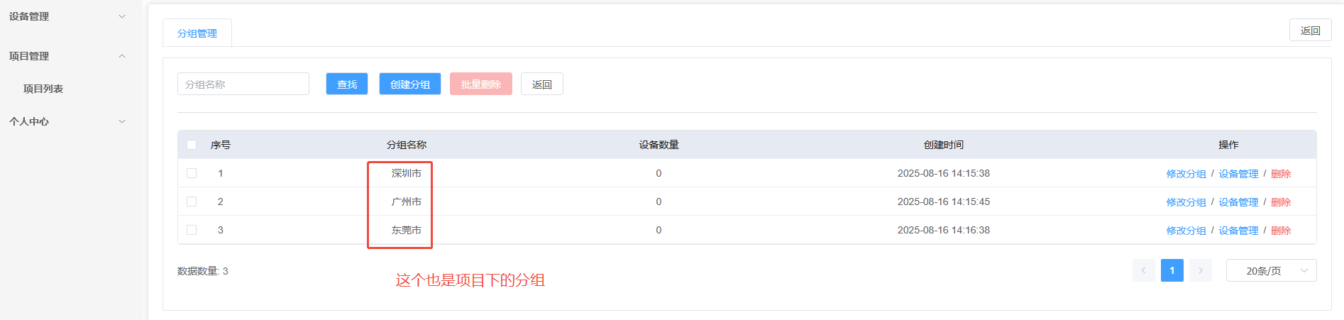 项目列表也是分项目,分组等信息,和小程序一样,分组管理。
