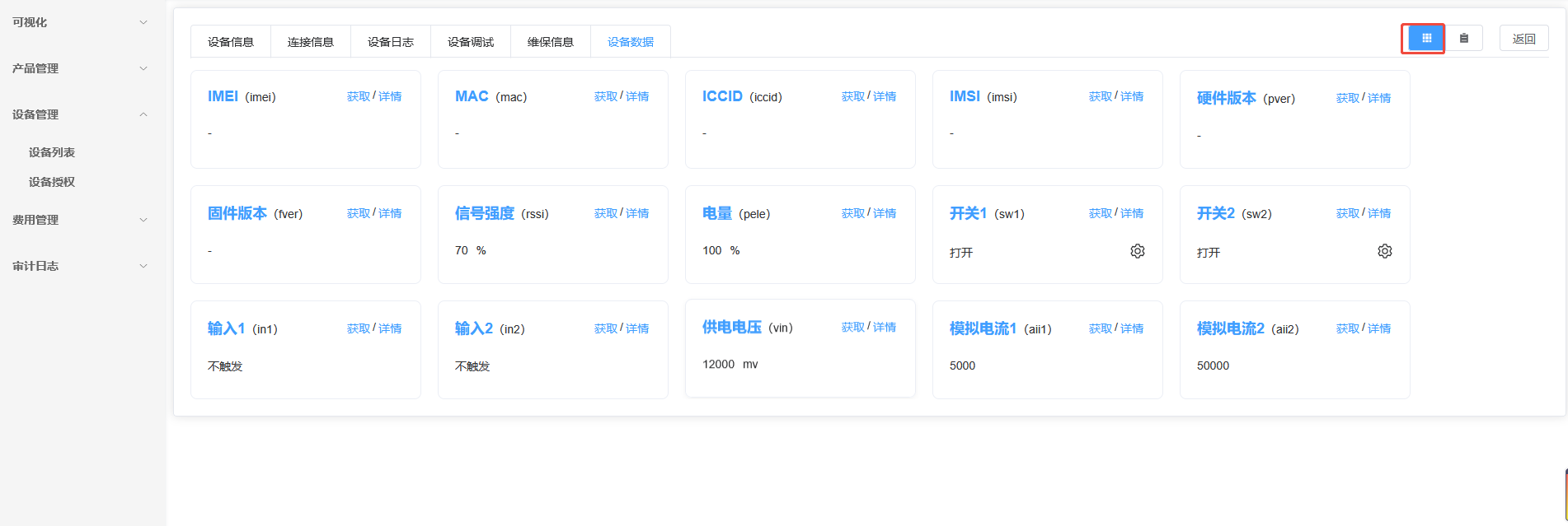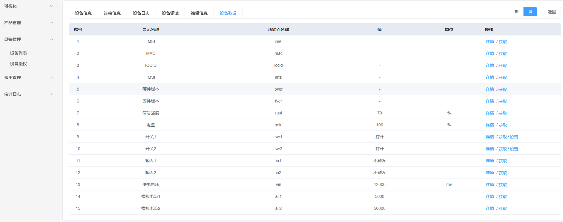 功能支持4G设备的连接,管理;支持设备数据点定义,解析,处理,储存,统计;支持微信小程序/APP管理对接;通过电话、短信、微信、邮件等报警信息通知;支持服务与服务器对接;支持服务器边缘计算数据;支持私有化部署,log替换,特殊功能定制。