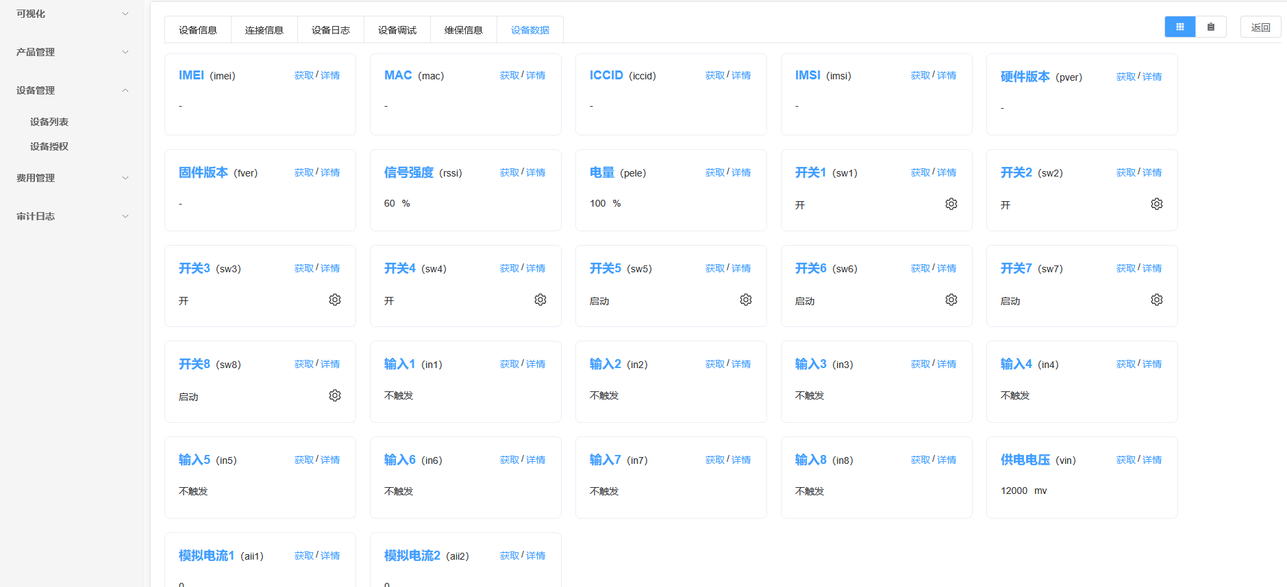 功能支持4G设备的连接,管理;支持设备数据点定义,解析,处理,储存,统计;支持微信小程序/APP管理对接;通过电话、短信、微信、邮件等报警信息通知;支持服务与服务器对接;支持服务器边缘计算数据;支持私有化部署,log替换,特殊功能定制。