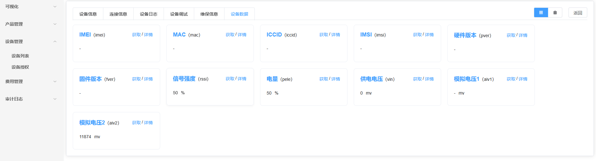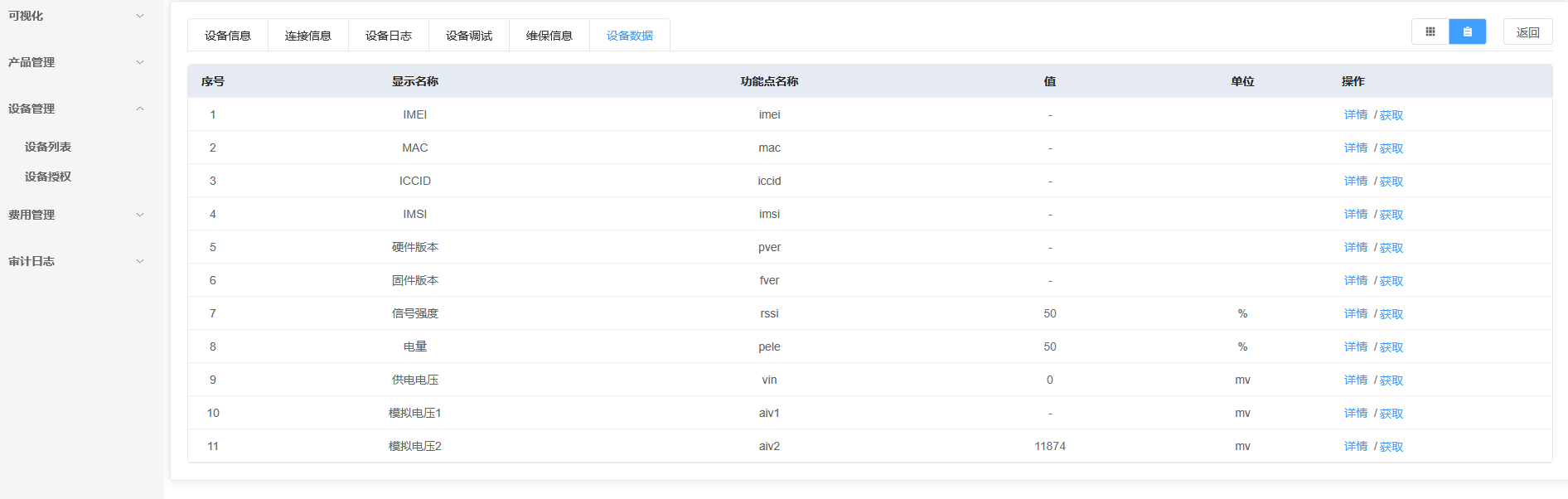 功能支持4G设备的连接,管理;支持设备数据点定义,解析,处理,储存,统计;支持微信小程序/APP管理对接;通过电话、短信、微信、邮件等报警信息通知;支持服务与服务器对接;支持服务器边缘计算数据;支持私有化部署,log替换,特殊功能定制。