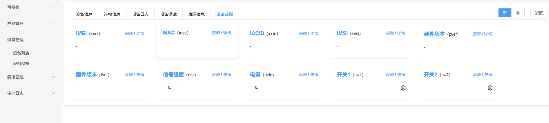 功能支持4G设备的连接,管理;支持设备数据点定义,解析,处理,储存,统计;支持微信小程序/APP管理对接;通过电话、短信、微信、邮件等报警信息通知;支持服务与服务器对接;支持服务器边缘计算数据;支持私有化部署,log替换,特殊功能定制。