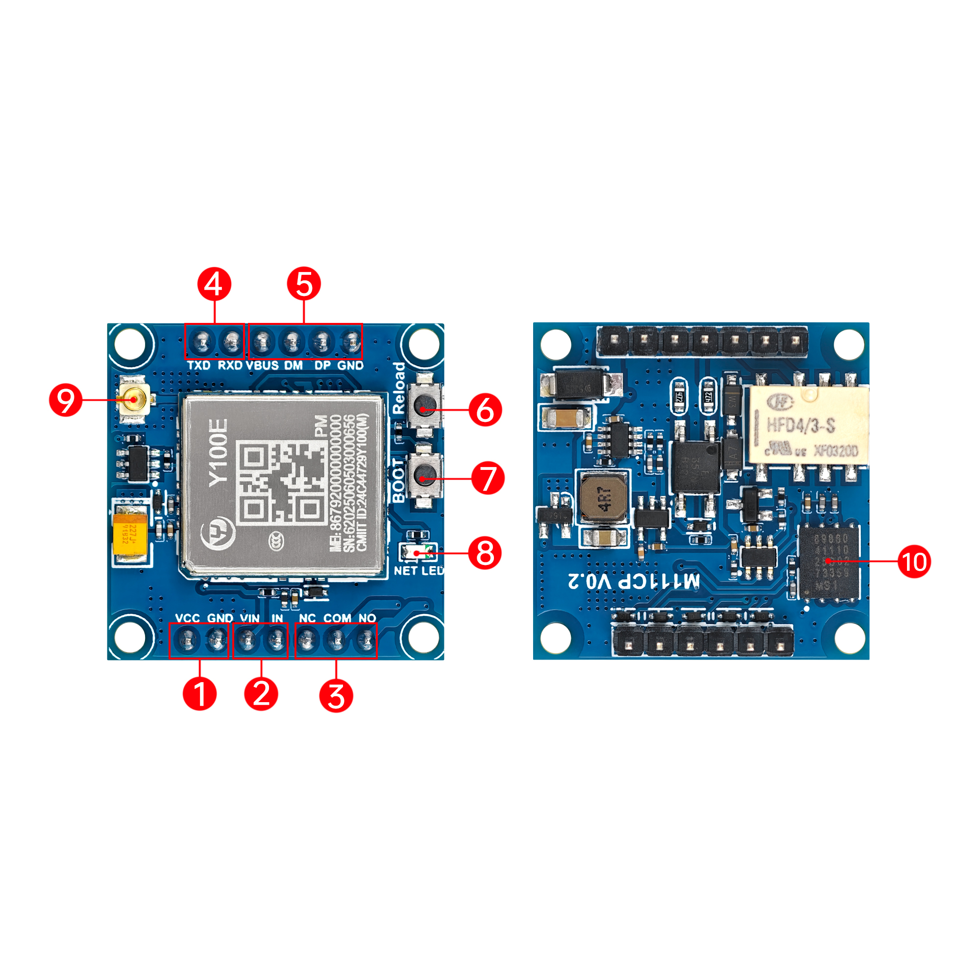 | 1 | VCC | 电源 | VIN表示正极,GND表示负极 供电范围:5~36V(10W) 支持供电电压采集 |