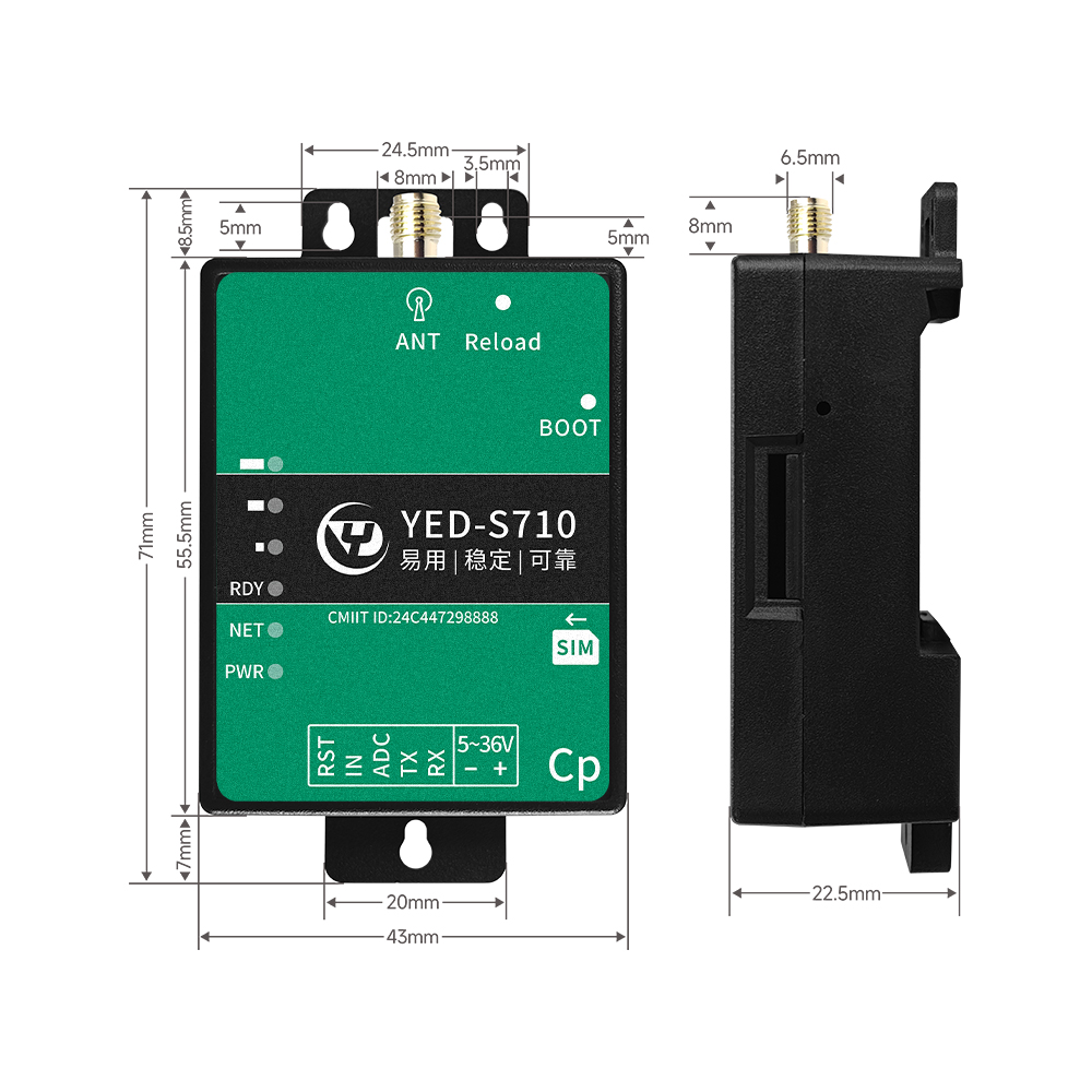 YED-S710Cp DTU是由银尔达(yinerda)推出的工业级的单TTL串口DTU 。小巧、稳定、可靠。适合设备控制,状态检测,传感器数据采集等通过4G网络与服务器通讯的场景,特性如下: