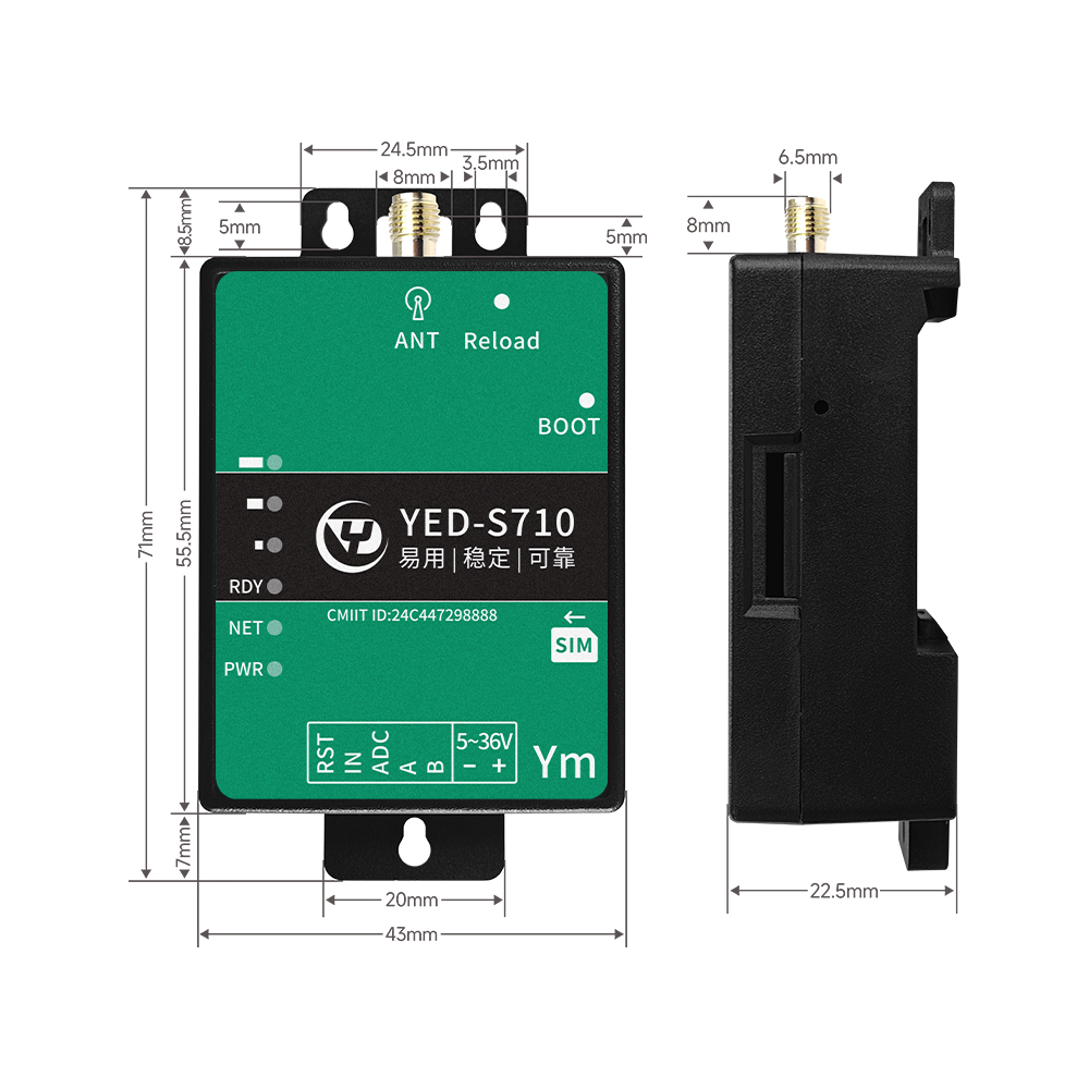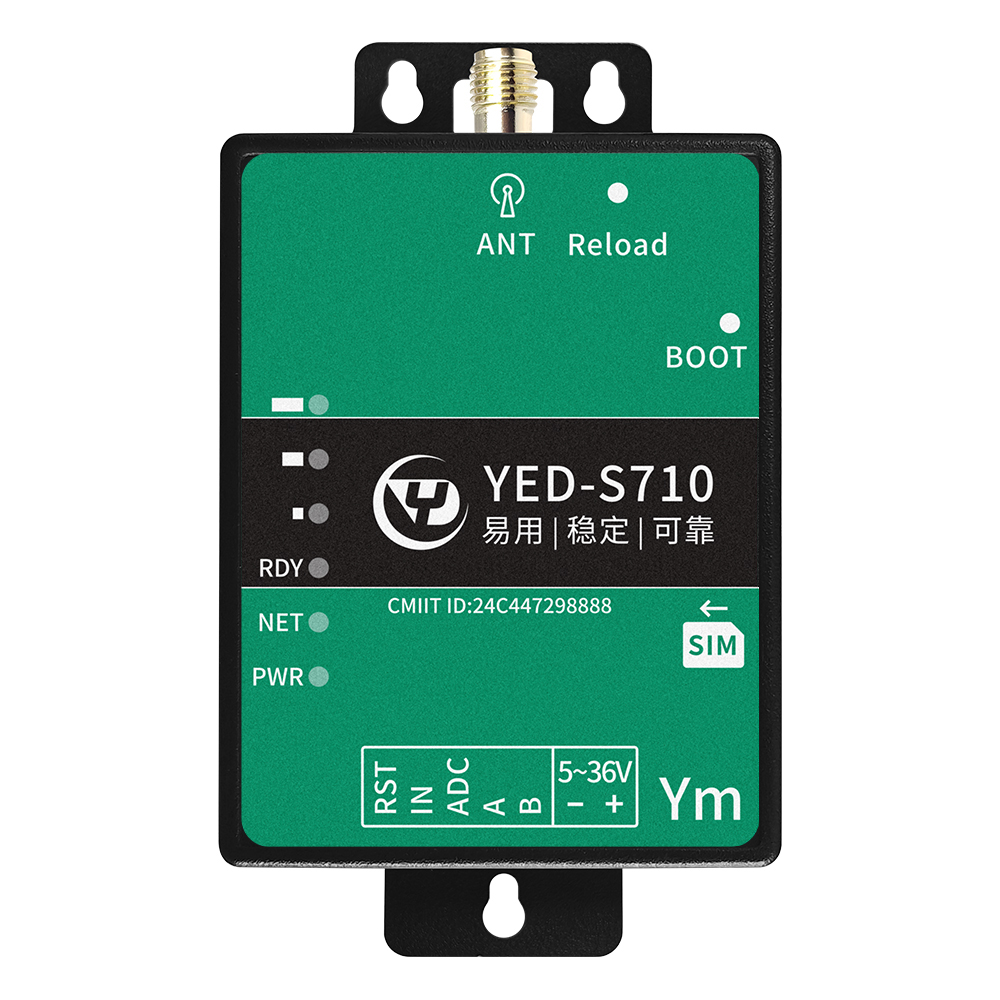 YED-S710Ym DTU是由银尔达(yinerda)推出的工业级的单RS485串口DTU 。小巧、稳定、可靠。适合设备控制,状态检测,传感器数据采集等通过4G网络与服务器通讯的场景,特性如下: