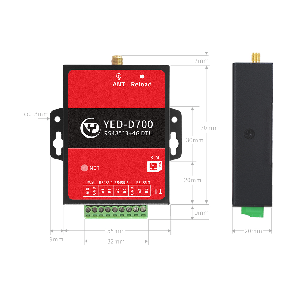 YED-D700T1 DTU是由银尔达(yinerda)推出的工业级的4G Cat1 DTU 。小巧、稳定、可靠。适合设备控制,状态检测,传感器数据采集等通过4G网络与服务器通讯的场景,特性如下: