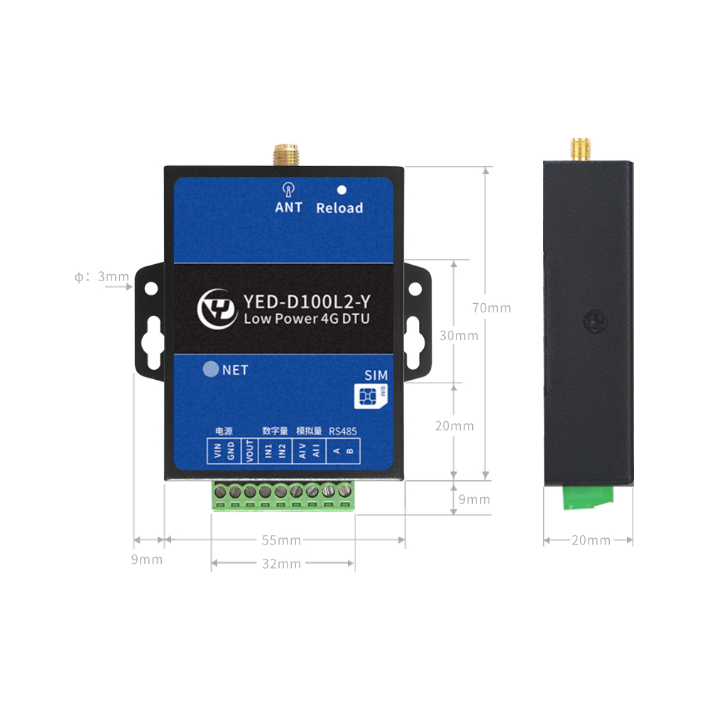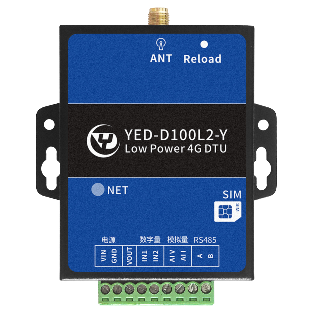 YED-D100L2-Y DTU是由银尔达(yinerda)推出的高性价的低功耗DTU,适合设备控制,状态检测,传感器数据采集等通过4G网络与服务器通讯的场景,特性如下: