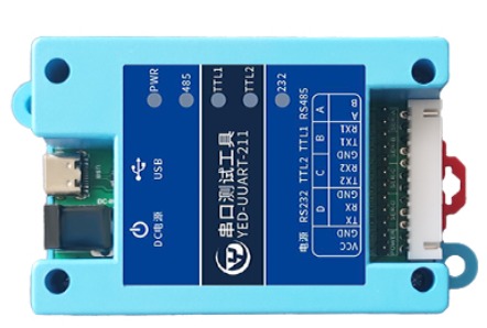 模块的VIN GND 接5~36V,10W的电源(不能用USB转串口那种电脑USB供电,功率不足);TTL 串口TX 接USB 串口的RX,RX接USB串口的TX,GND接USB串口的GND。推荐使用银尔达的YED-UUART-211测试工具测试,方便供电和串口连接调试。