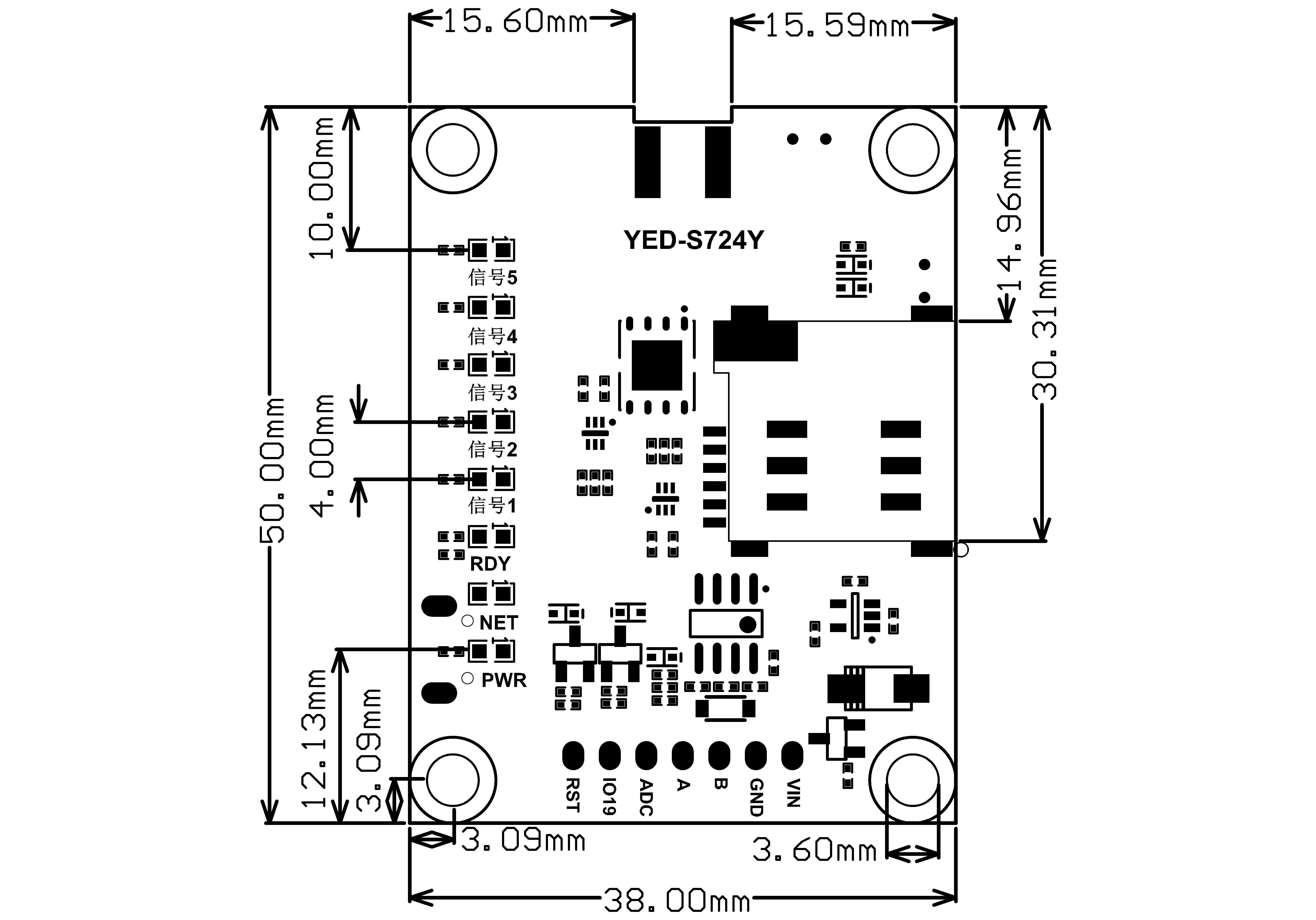 | 3 | PWR | 电源指示灯 | 供电正常常亮(注意只接USB也会昏暗的常亮,是没供电的) |