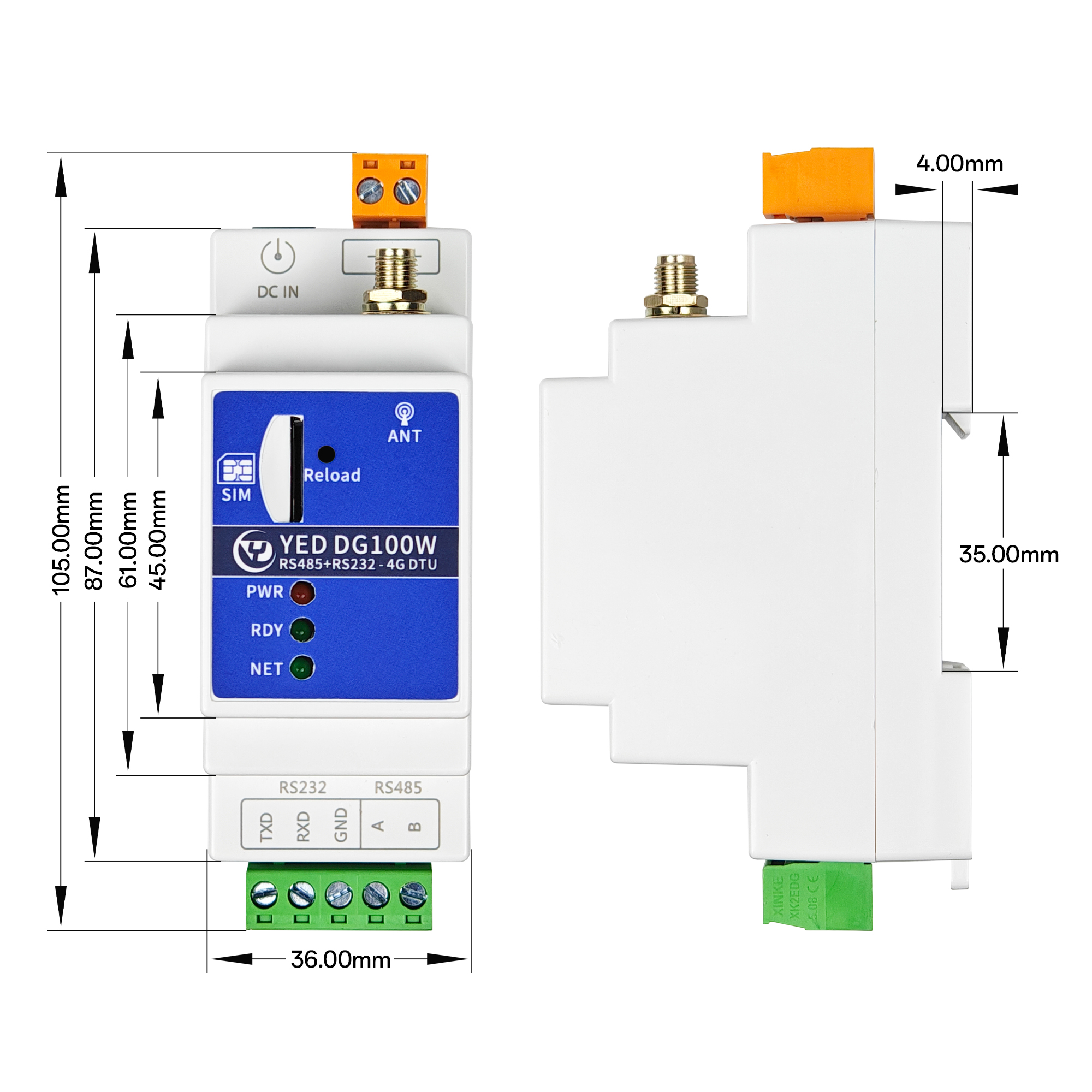 YED-DG100W 是一款基于合宙Y100E系列高性价比的Cat1 4G DTU。支持移动、电信、联通 全网通4G,可以方便集成到自己的设备系统中。特性如下: