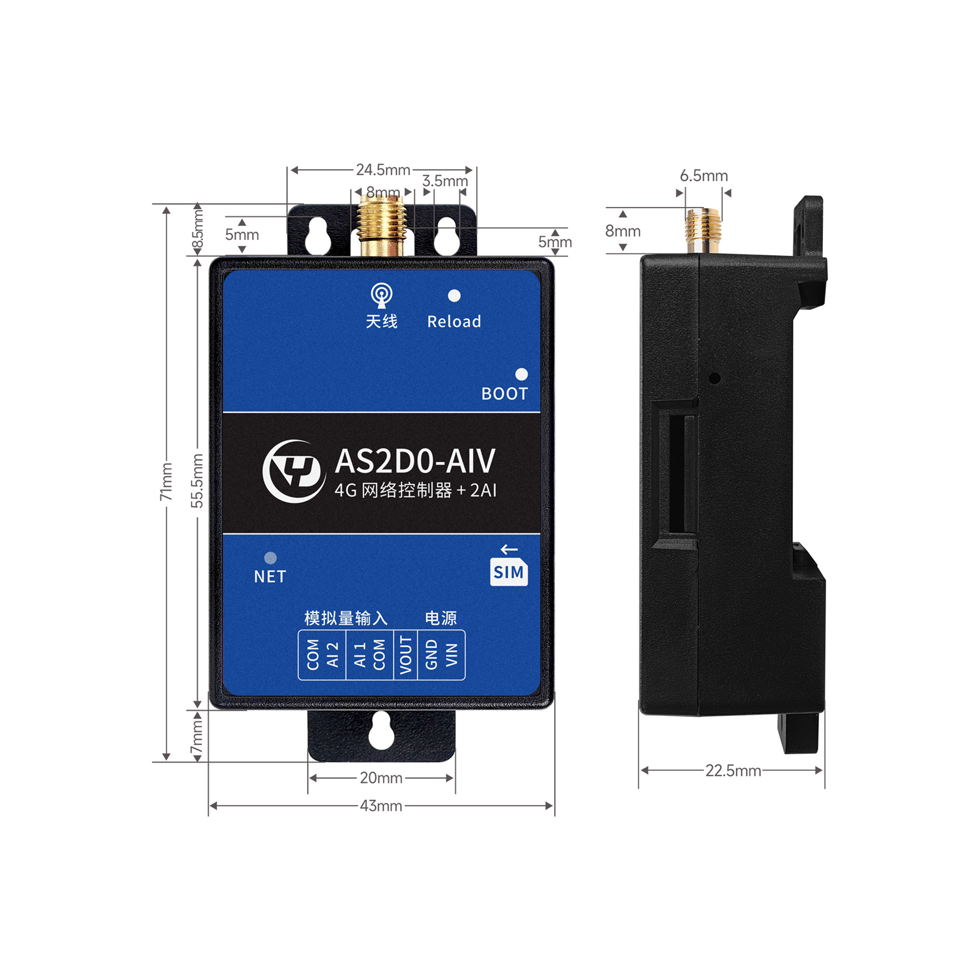 | 模拟量采集 | 2路 | 两路0-10V采集或者两路0-20ma采集 |