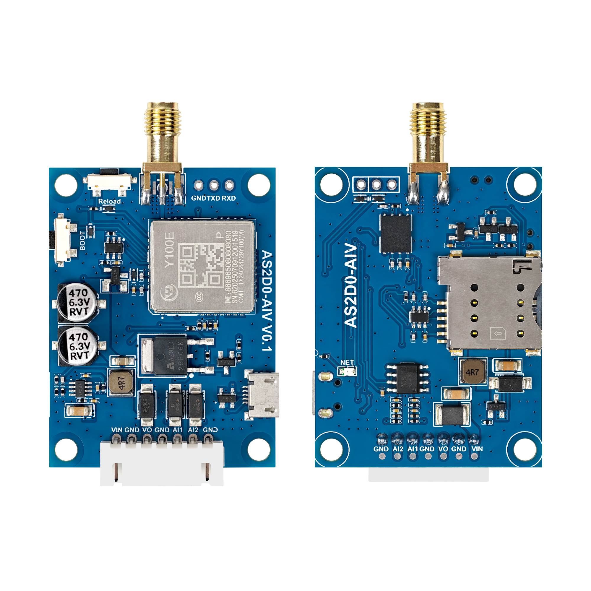 模块的VIN GND 接7~36V,10W的电源(不能用USB转串口那种电脑USB供电,功率不足);推荐使用银尔达的YED-UUART-211测试工具测试,方便供电和串口连接调试。