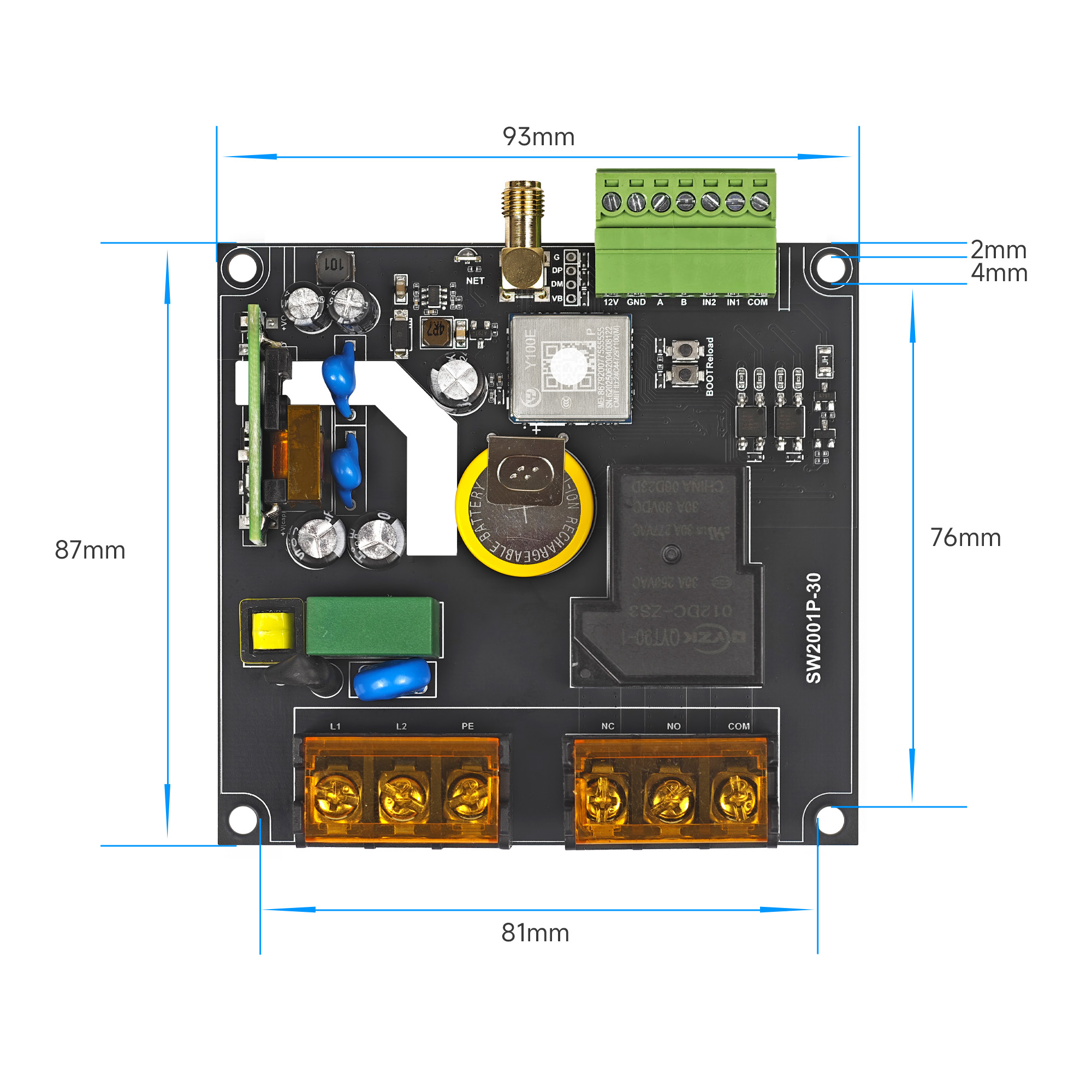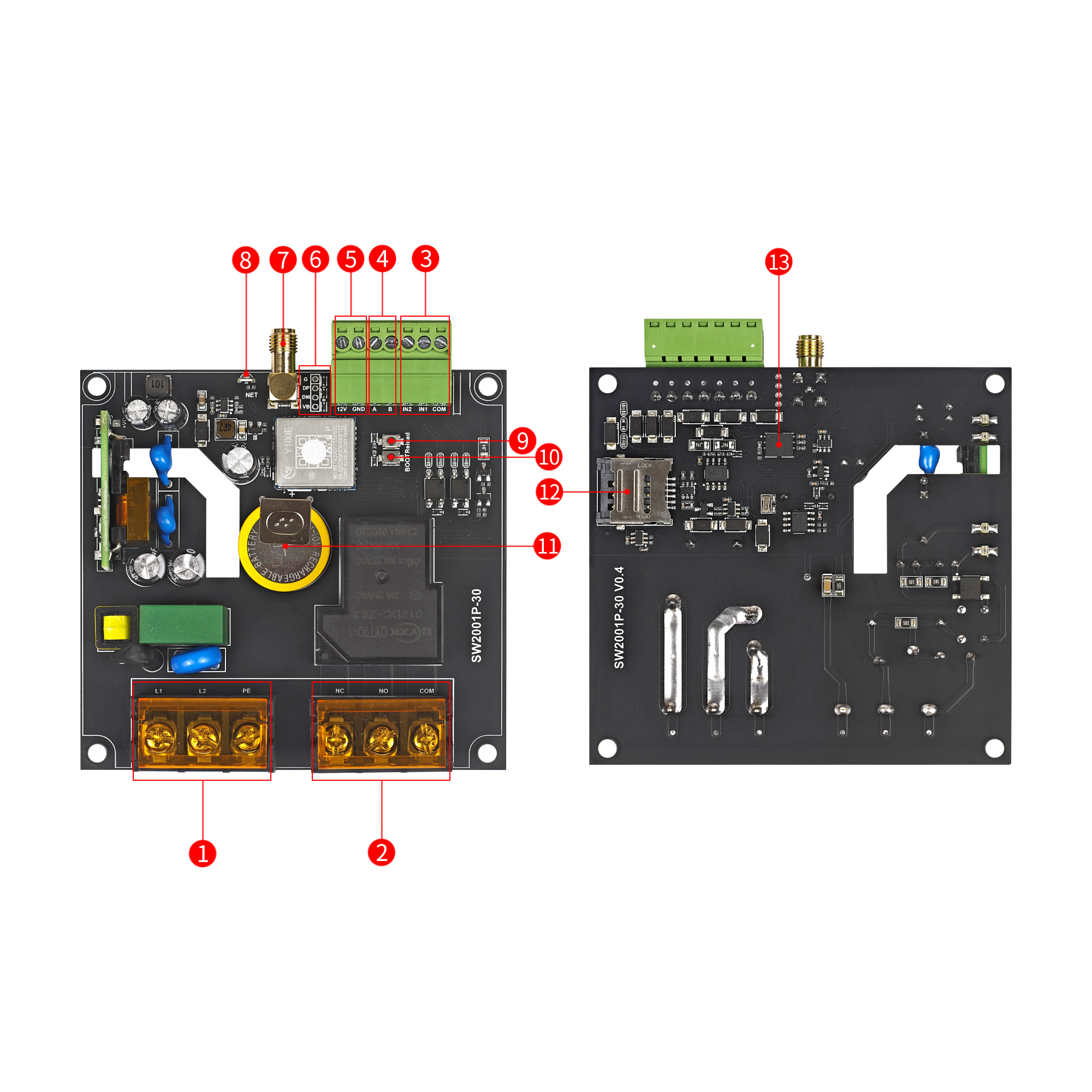 | 2 | NO/COM/NC | 继电器 | 默认COM(公共端)与NC(常闭)导通/打开后COM与NO(常开)导通 220VAC 30A /30VDC 30A |