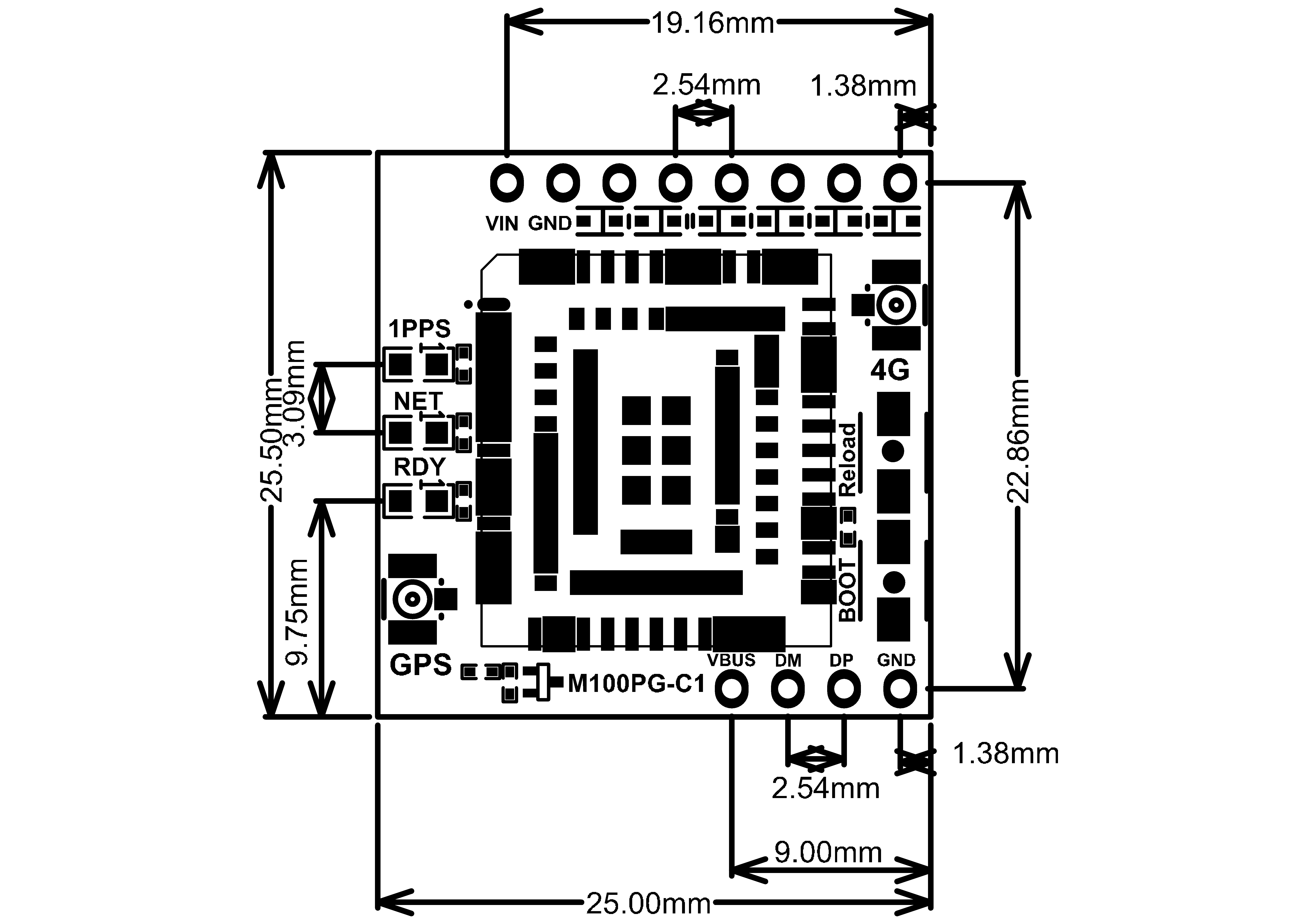 | 1PPS | GPS的1pps输出,1.8V电平,定位成功后,1秒输出高电平脉冲 | ||