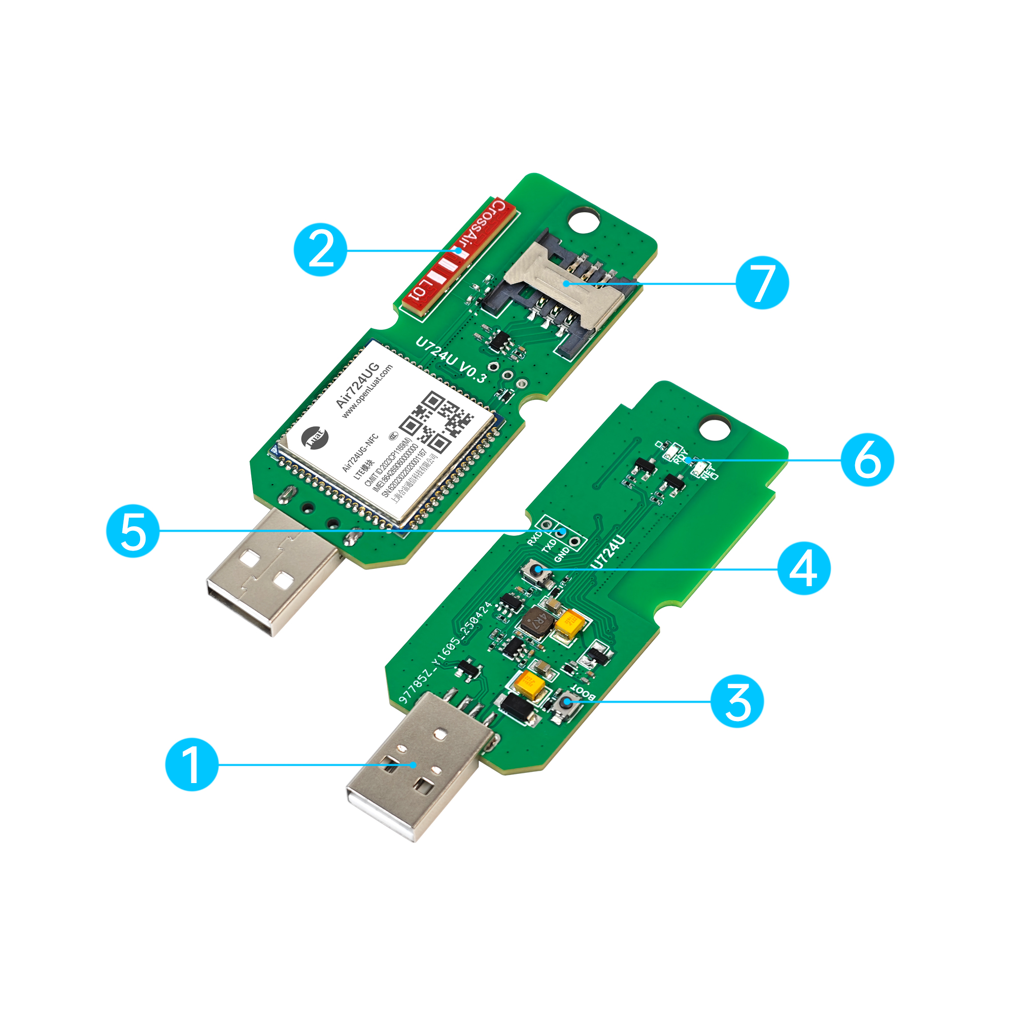 U724U 核心板是由银尔达(yinerda)基于合宙Air724模组推出的USB供电DTU 。小巧、稳定、可靠。能够把接收网络数据、短信自动发送到目标服务器,也可以用于做USB网卡。