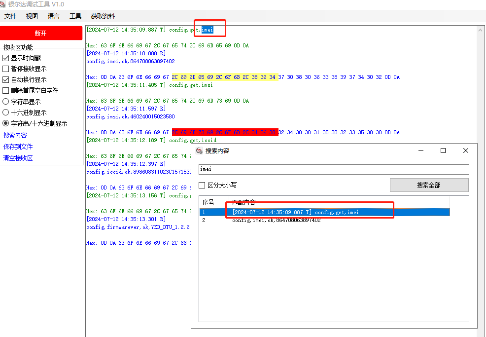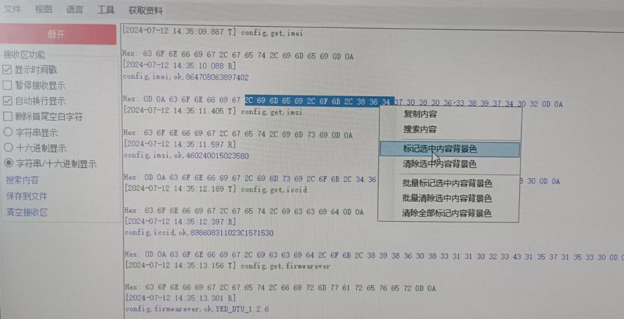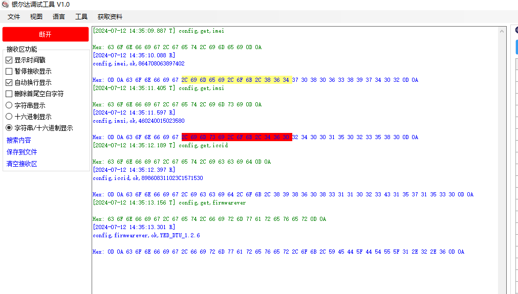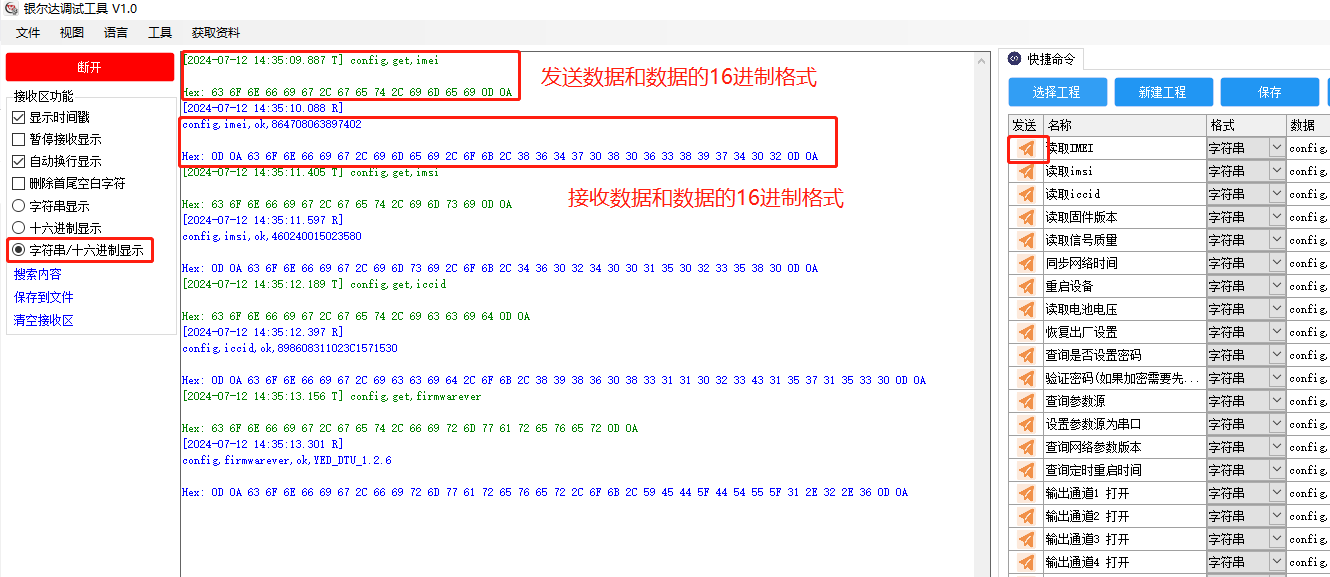 可以通过显示格式,观察字符串和16进制格式,方便观察数据的本质